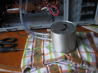 The next step involves attaching the tubes. Normally the sequence is pump->cpu->radiator. However I attached it wrong as well: pump->radiator->cpu. To be continued.